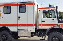 Neuestes Fahrzeug des ASB-Bevölkerungsschutzes ist ein geländegängiger Rettungswagen auf Basis eines Unimog, der den Erlanger Samaritern seit diesem Monat zur Verfügung steht und im Ernstfall zum Einsatz kommen wird.