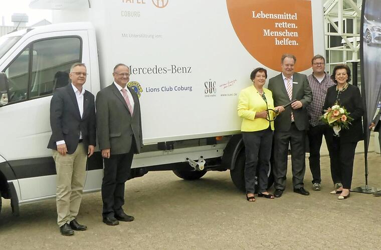 Coburg, Karl Baier, Präsident des Lions Club, Edda Kross vom Vorstand der Tafel sowie Jürgen Kross, Pressesprecher der Tafel Coburg, übergeben. Bereits seit 1998 unterstützt Mercedes-Benz als einer der Hauptsponsoren die deutschen Tafeln. "Wir sind stolz darauf, ein so bedeutsames Projekt wie die Tafel zu unterstützen und damit etwas Gutes zu tun", sagte Holger Bender, Mitglied der Geschäftsleitung des Mercedes-Benz Autohauses Bender.