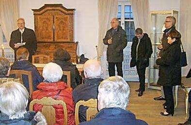 Im Anschluss führte Bürgermeister Karsten Fischkal (FW) durch das Schloss und lud zum Sektempfang ein. Mit kurzweiligen Ausführungen erläuterte er die Geschichte des Schlosses.