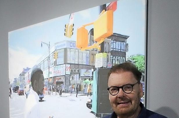 Zu sehen sind, auf großformatige Leinwände geprintet, stadtlandschaftliche Motive mit Szenen aus dem Leben des Künstlers in New York und in Brasilien, aber auch sehr aktuelle Sujets, wie etwa das Bildnis eines Jungen mit Corona-Maske.