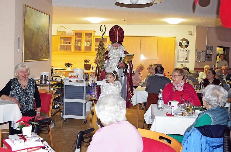 Die BRK-Senioren luden zu ihrer traditionellen Weihnachtsfeier. Als freudige Überraschung gesellte sich auch ein ganz besonderes himmlisches Duo hinzu: der Nikolaus (Rainer Lohr) mit Engelchen Ida. Se...