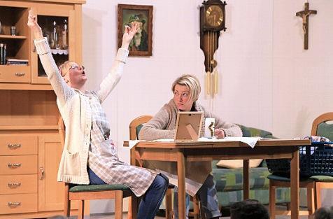 "Der Himmel wart net", eine Komödie in drei Akten von Markus Scheble und Sebastian Kolb, stand auf dem Programm im Saal des Pfarrheims. Dieter Göthert als Mitglied des Vorstands dankte vor der letzten Aufführung für die Treue der Zuschauer und der Kirchenverwaltung für die Bereitstellung des Pfarrsaals.
