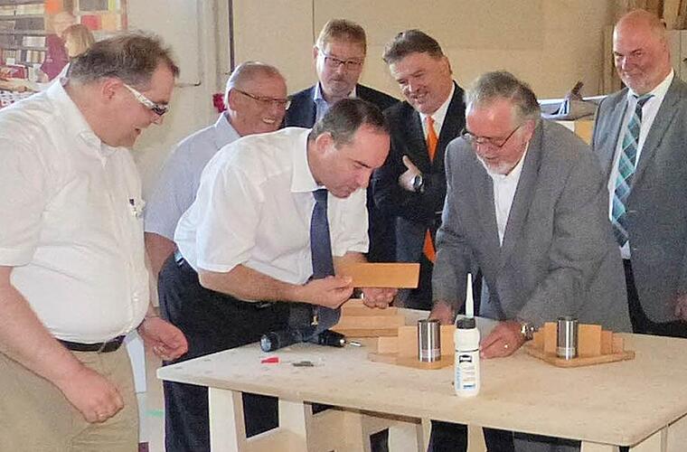 Landtagsvizepräsident Peter Meyer lobte zum Abschluss der Besichtigung die sehr leistungsfähige mittelständische Handwerksfirma: "Wir haben erfahren dürfen, dass Schreiner ein sehr anspruchsvoller Beruf ist."