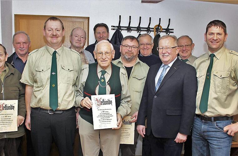 Bei den Ehrungen stand als "dienstältestes" Mitglied wiederum Alfred Hofmann mit 50 Jahren als Vereinsmitglied ganz vorne. Gefolgt von Paul Hofmann, der seit 45 Jahren dem Verein angehört. Für 40-jährige Treue wurden Rudolf Braun, Anton Murk, Josef Schmitt, Fritz Wächtler, Christoph Berdhold und Rudolf Sperber ausgezeichnet. Gerhard Sperber, Willi Staudigel, Hans Lichtscheidel und Johannes Murk gehören dem Anglerverein seit 35 Jahren an. Rainer Murk, Richard Hofmann, Klaus Dresel und Erich Holley zählen seit 30 Jahren, Georg Röckelein und Sebastian Schmidt seit 25 Jahren zum Verein.