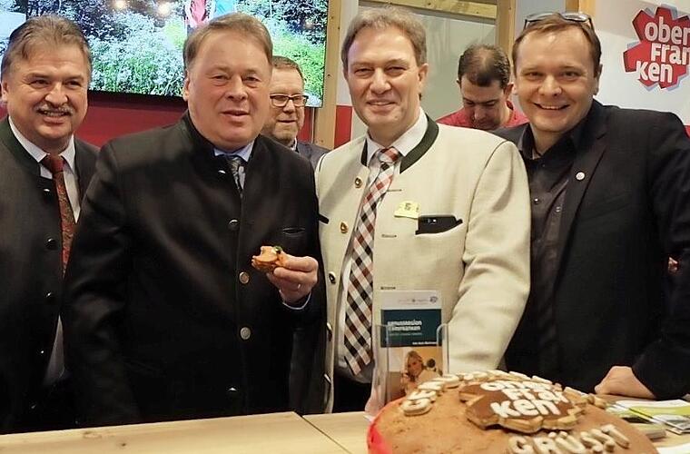 Noch bis Sonntag präsentieren sich oberfränkische Touristiker und Produzenten in der Hauptstadt. Viele oberfränkische Politiker und Entscheider kamen am Oberfrankentag, 20. Januar, nach Berlin. Seit drei Jahren organisiert der Verein Oberfranken Offensiv den oberfränkischen Gemeinschaftsstand auf der Internationalen Grünen Woche in Berlin. Unter dem Dach der "Genussregion Oberfranken" zeigen die Tourismusregionen Fichtelgebirge, Frankenwald, Fränkische Schweiz und Bayreuth, was Oberfranken in Sachen Genuss und Tourismus zu bieten hat. Erstmals unterstützen alle neun Landkreise und die vier kreisfreien Städte Oberfrankens den gemeinsamen Auftritt in Berlin. Das Ergebnis: ein neuer Messestand in modernem Design mit Monitorwand, die Videos mit Highlights aller oberfränkischen Regionen zeigt. Ein echter Blickfang in der stark frequentierten Bayernhalle. "Oberfranken schmeck gut", das weiß auch Helmut Brunner, der Bayerische Minister für Ernährung, Landwirtschaft und Forsten. "In den letzten Jahren hat sich Oberfranken als Marke exzellent entwickelt", so der Hausherr der Bayernhalle.