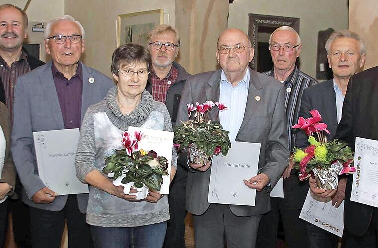 40 Jahre Mitglied sind Inge Ebert, Otto Lachmann, Alfred Korger (Weißenbrunn), Helmut Beck (Gössersdorf) und Helmut Jungkuntz (Grün). Schon