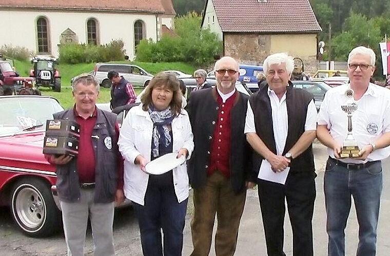 Am Nachmittag unterzogen sich die Oldies einer Fahrprüfung. Die Prüfungen verlangten den Fahrern einiges an Geschicklichkeit und Fahrkönnen ab. So musste man 1,35 Meter blind vorwärts fahren. Mit dem rechten Vorderrad galt es, auf einem kleinen Viereck zu halten. Weitere gute Fahrtechnik verlangte das Durchfahren zweier eng beieinanderstehenden Stangen. Auch das Schätzvermögen war gefragt, in dem man das Gewicht einer Feder schätzen musste. Ein Speiseservice, gespendet von Bürgermeister Egon Herrmann, sicherte sich mit Platz eins Andrea Schmitt aus Küps mit ihrem Chevy Bel air. Über den Wanderpokal freute sich Thomas Schwemmlein aus Gundelsdorf, er fährt ein Mercedes Coupé. Platz drei ging an Heinz Martin aus Au mit seiner Isetta. Er konnte zwei schöne Kaffeetassen mitnehmen.