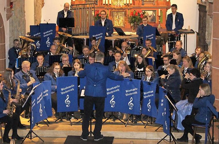 Musik sei so unterschiedlich wie das Leben selbst, sagte der Ortsgeistliche Pater Gabriel Ramos Valiente. Musik könne auch ein Gebet sein. Das nachfolgende Konzert offenbarte ein Orchester von gewaltiger Klangfülle. 38 Musiker vermittelten den Zuhörern mit unterschiedlichsten Melodien die Macht der Musik. Dies reichte vom "Arioso" des großen Komponisten Johann Sebastian Bach bis zum traditionellen "Alle Jahre wieder", das die Jugendblaskapelle Wachenroth bei ihrem ersten großen Auftritt anstimmte. Evi Seeger
