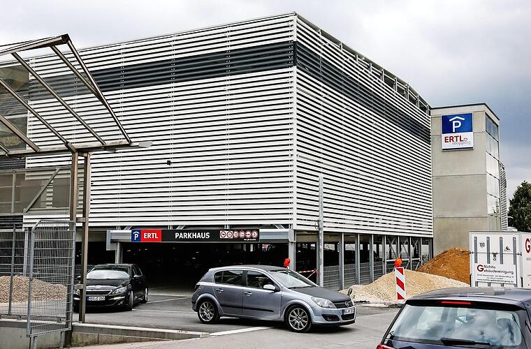 Mit insgesamt 772 Stück sollten den Kunden von Ertl-Zentrum und Fachmarktzentrum ausreichend Parkplätze zur Verfügung stehen, meint Gaby Schrödel. Das moderne Fertig-Parkhaus ist in einem knappen Jahr von der Firma Goldbeck errichtet worden. Eine Firma mit Hauptsitz in Bielefeld, die weltweit tätig ist. Das nächste Goldbeck-Fertig-Parkhaus finde man bereits in der Jäckstraße. Das Ertl-Parkhaus ist direkt vom Ertl-Zentrum aus und somit bei Regen trockenen Fußes zu erreichen. Mit einer Breite von 2,70 Meter seien die Plätze großzügig bemessen, so Schrödel. Da sie größtenteils säulenfrei sind, sollte auch die Gefahr ungewollten Kontakts minimiert sein. Bei einer Durchfahrtshöhe von 2,10 Metern, komme auch ein VW-Bus durch, aber nur ohne Dachständer.
