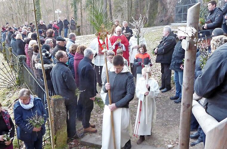 Mit dem Palmsonntag beginnt die heilige Woche oder auch Karwoche genannt. Traditionell fand die Segnung der Palmzweige in Gößweinstein vor der Ölberggrotte statt.
