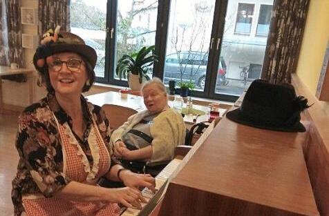 Zuerst spielte sie ein Medley der bekannten Kinderlieder gekonnt und mit Schwung auf dem Klavier. Die Bewohner waren begeistert, ihre alten Weisen aus Kinderzeit wieder mal zu hören und mitsingen zu dürfen. "Wir sind ja hier nicht in der Oper", bemerkte die Künstlerin.