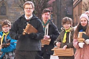 Zusätzlich zum Spendensammeln mit den Ratschen bieten die Pfadfinder am Samstag ab 8 Uhr auf dem Marktplatz gefärbte Eier zum Verkauf. Der Erlös daraus fließt ebenfalls in den Spendentopf. kb