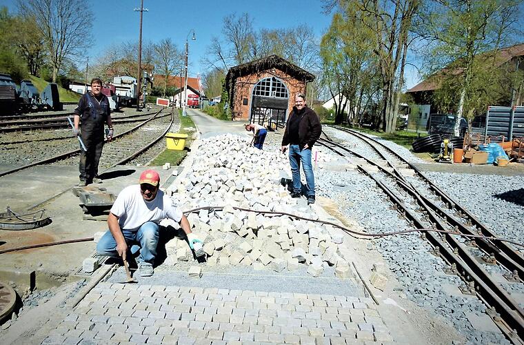 Die Holzschwellen der Gleise im Kleinbahnbereich, so der Geschäftsführer, seien durch recycelten Kunststoff ersetzt worden. Auch neuer Gleisschotter sei eingebaut worden. "Wir haben die Weichen instandgesetzt und die bestehenden Gleise auf die Normalspur ausgerichtet."