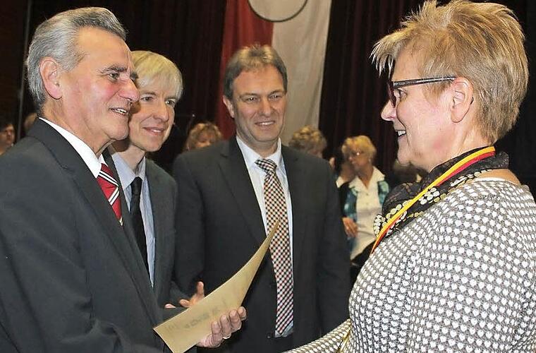 Sein Dank galt zudem den "starken Unternehmen und dem starken Handwerk", die nicht nur Arbeitsplätze zur Verfügung stellen, sondern sich auch sozial engagieren und letztendlich auch die für die Kommunen so wichtige Gewerbesteuer bezahlen. Er forderte seine Bürger auf, sich weiterhin zu engagieren - jeder an seinem Platz. "Jedes Rad ist wichtig und zählt!"