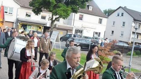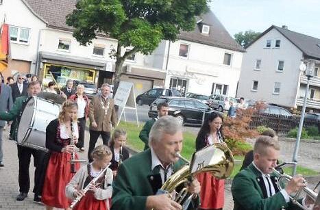 Nach der Messe im Gedenken spielte zum Frühschoppen ebenfalls der Musikverein Pressig auf. Die Musikanten freuten sich zum Kirchweihsonntag zwei Debütantinnen vorstellen zu können. Die beiden zehnjährigen Schülerinnen Antonia Fröba (Klarinette) und Sophia Scherbel (Querflöte) hatten bei der Kirchenparade und dem Frühschoppen ihren ersten großen Auftritt.