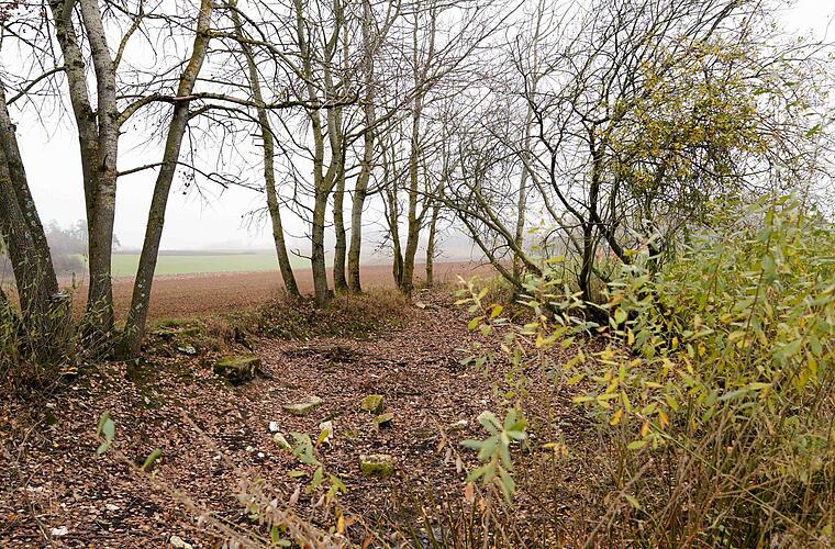 Biologin Kristina Schröter von der Unteren Naturschutzbehörde, die selbst mit Hand anlegte, erklärte die Maßnahme: "Wir schaffen hier neuen Lebensraum zusätzlich zum Hülweiher." Denn am Ende des neu bepflanzten Streifens liegt wie eine kleine Oase zwischen zwei Feldern die Bodhül, eine der letzten historischen Hülen der Jurahochfläche.