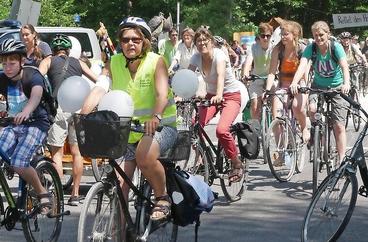 300 sattelfeste Menschen setzten am Samstag ein Zeichen: Auf Einladung des Bundes Naturschutz trafen sie sich im Hauptsmoorwald, um von dort zu einer Kundgebung in die Innenstadt zu radeln. Mit der Aktion sollte ein zeichen gesetzt werden gegen die geplanten Abholzungen für ein großflächiges Industrie- und Gewerbegebiet.