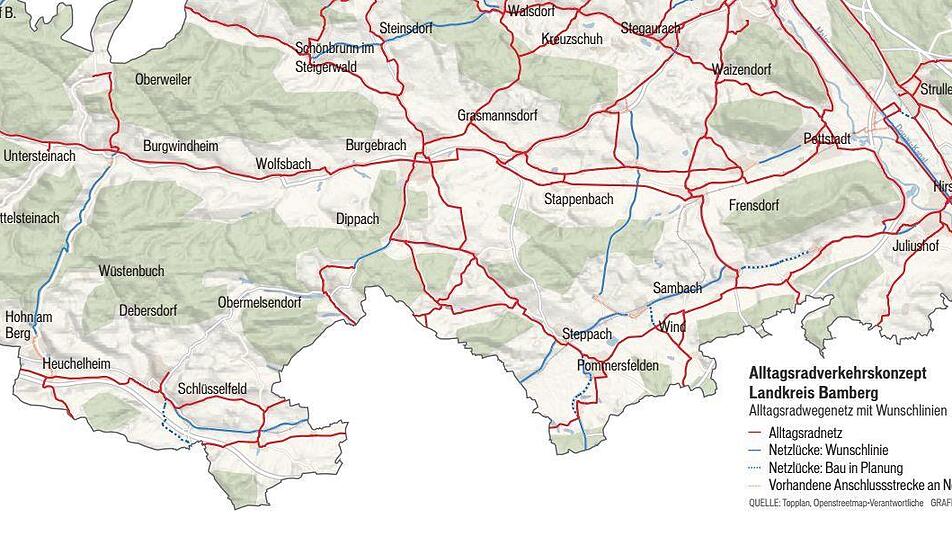 Das sind die Wunschlinien für Alltagsradfahrer im Bereich der Gemeinden Schlüsselfeld, Pommersfelden, Frensdorf und Pettstadt.