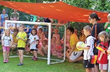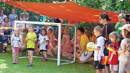 "Was der Kindergarten alles kann", lautete das Thema einer Vorführung der Kindergartenkinder. Diese zeigten sich sportlich, entweder als Balletttänzerinnen und -tänzer, als Rapper oder Fußballer. Der Nachmittag klang mit einem gemütlichen Beisammensein aus. Für die Kinder gab es verschiedene Spielangebote und eine Hüpfburg. Der Elternbeirat verkaufte Lose für eine Tombola. Der Erlös kommt der Arbeit im Kindergarten zugute.