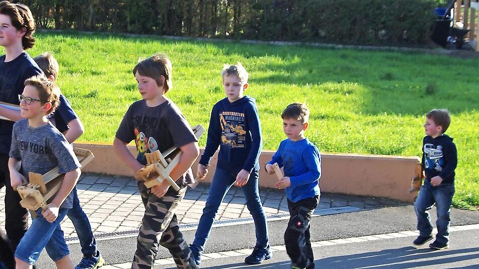 Engelbert Lieb, der Vorsitzende des Vereins, freute sich über seine altbewährten Helfer und lud sie nach getaner Arbeit ins Jugendheim zu einer Brotzeit, Kaffee und Kuchen ein. "Wir rufen den Engelsgruß", schallte es am Gründonnerstag pünktlich um 18 Uhr durch die Straßen und Gassen von Oberleiterbach. Rund ein Dutzend Kinder und Jugendliche zogen unüberhörbar mit lautem Geknatter durchs Dorf. Am Karfreitag und am Samstag begann die erste Runde für die "Ratschenkids", die an den "stillen Tagen" die Kirchenglocken ersetzen, bereits um 6 Uhr früh. Insgesamt machen sie sich ein Dutzend Mal auf den Weg. Ihren Lohn sammeln sie am Samstagnachmittag, wenn sie von Haus zu Haus gehen und Süßigkeiten und andere Aufmerksamkeiten erhalten. Auch in Wolfsdorf wird der Brauch gepflegt und es heißt für die "Raspelbuben" früh aufstehen. Von Gründonnerstag bis Samstagabend laufen sie dreimal am Tag alle Straßenzüge ab. Zwischen ihren Raspel-Einlagen rufen sie "Ave Maria gratia plena", was aus dem Lateinischen übersetzt "Gegrüßet seist du Maria" bedeutet. Manche Ratschen haben schon etliche Jahre auf dem Buckel und werden von Generation zu Generation weitergegeben. mel/eli/thü