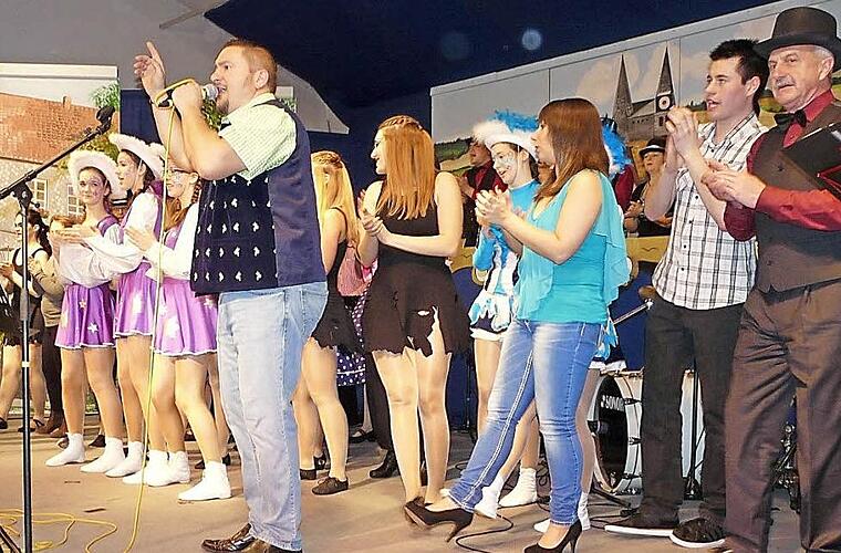 Die Stimmung kochte, als sie die anwesenden Bürgermeister aus dem Landkreis Coburg und die Promis auf die Bühne rief und gemeinsam mit ihnen sang "Hallo, Klaus". Aber nicht minder gelungen war der Auftritt von Lisa Geuther, die als "Marion aus Usedom" die Lacher auf ihre Seite zog. Sie kam von Berlin und hat sich in Kreuzberg gut eingelebt. Die Einladung nach Meeder nahm sie an und erzählte witzig im sächsischen Dialekt von den Erfahrungen eines Babysitters. Als Anschauungsmaterial holte sie Bürgermeister Höfer zu sich und zeigte, wie sich die Menschen im Karneval verändern können. Den Text steuerte Claudia Dinges bei. Die "Meederer Schmalzbuam" und Allroundtalente Andreas Lutz und Markus Weschenfelder zeigten einen Sketch, der sich in einer Amtsstube abspielte.