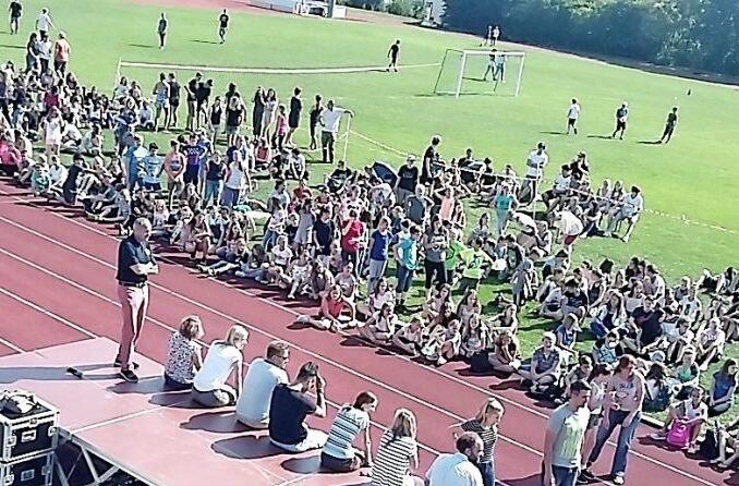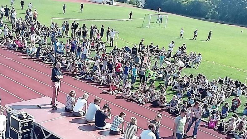Dort erwartete die Schüler ein bunter Reigen an Spielen, den sich die Zehntklässler unter der organisatorischen Federführung ihrer Schülersprecherin Sophia Lodde ausgedacht hatten. Schulleiter Langer musste mit wechselnden "Kompetenz-Teams" aus seinem Kollegium die entführten Lehrkräfte "freispielen", was nur bei der Hälfte der witzigen Spiele gelang. Dafür machten er und seine Kollegen beim Macarena-Tanzen eine umso bessere Figur, bevor den zweiten Teil des Vormittags ein Fußball-Match der Schüler gegen ihre Lehrer beschloss. Das Elfmeterschießen konnten die Lehrer überlegen für sich entscheiden, nicht zuletzt dank des überragenden Keepers, Konrektor Markus Ott.