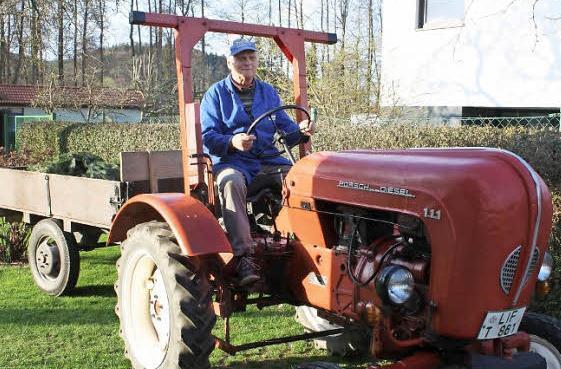 Weismain — Den roten Porsche, Typ A111, Baujahr 1956, mit zwölf PS steuert Georg Dinkel auf dem Fahrersitz durch Weismains Straßen mit einem 600 Liter Wasse...