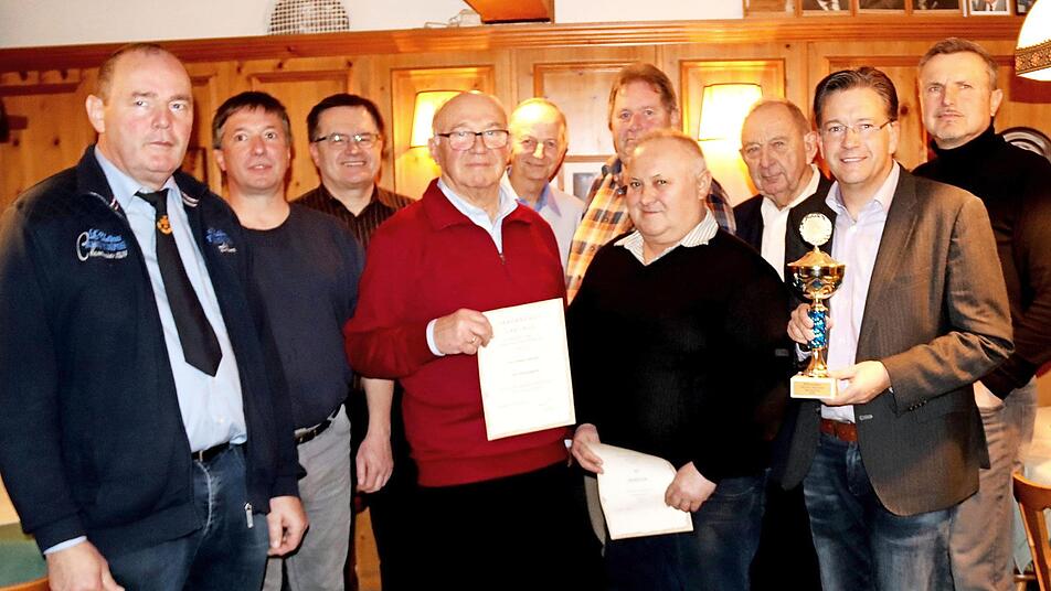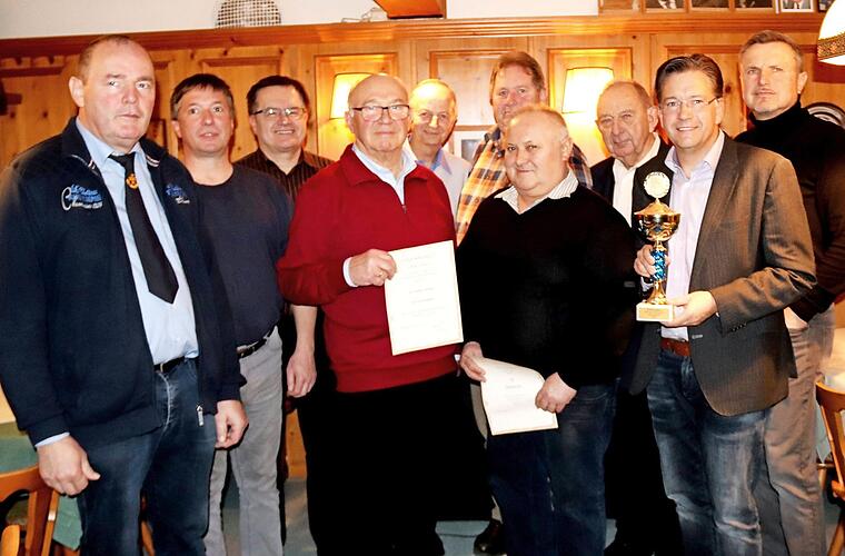 Mölkner nahm die Ehrung langjähriger Mitglieder vor. Bereits seit 40 Jahren sind Armin Goß, Alfred Kupfer, Ewald Münch und Alois Stillrich in der Kameradschaft. Robert Hörrlein wurde zum Ehrenmitglied ernannt und der Bürgermeister erhielt den Wanderpokal vom Kameradschaftsschießen 2017, den er "erschossen" hat.
