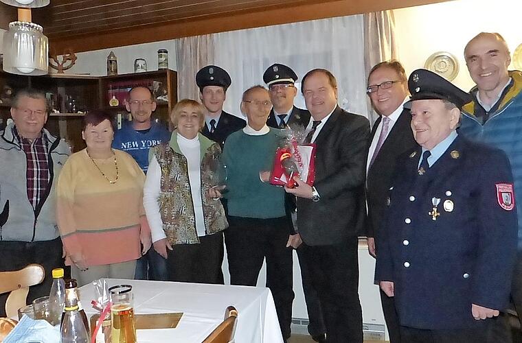 Für die Feuerwehr Weidmes bedankte sich Vorsitzender und Kommandant Christian Fittner bei Robert Schmidt für seinen außerordentlichen Einsatz. Er diente 43 Jahre in der Löschgruppe und blickt auf eine 75-jährige Mitgliedschaft zurück.