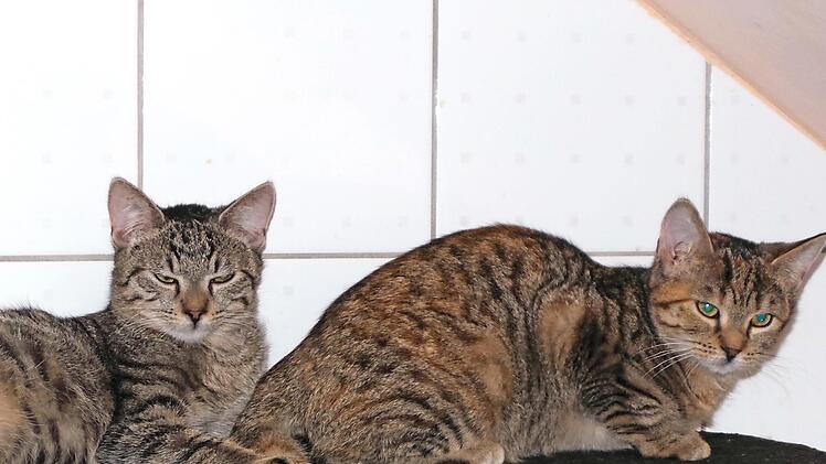 Robin (links) und Vroni sind zwei halbwüchsige Katzenkinder, die schon länger im Tierheim Kulmbach wohnen. Da sie nicht gleich auf die Menschen zugehen, sondern ein wenig Zeit brauchen, um Vertrauen z...