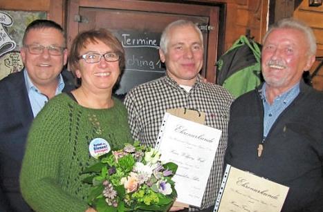 Außerdem zeichneten der Vorsitzende Andreas Gehring, sein Stellvertreter Stefan Leistner und Ehrenvorsitzender Arnfried Fischer einige Mitglieder für ihre langjährige Treue aus. Dorothea und Wolfgang Weiß sind seit 25 Jahren beim HBV. Franz Zetzmann gehört dem Heimat- und Bürgerverein seit 40 Jahren an. Die Jubilare bekamen als Auszeichnung Ehrennadeln in Bronze, Silber beziehungsweise Gold. Verzehrgutscheine gab es für Almut Hagner und ihr Ortsverschönerungsteam sowie für Oliver Bauer, Gerhard Wagner und Rainer Jacob für ihre ehrenamtliche Unterstützung.