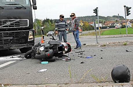 Burgkunstadt — Bei einem Verkehrsunfall am Montag gegen 15.40 Uhr ist ein 57-jähriger Rollerfahrer schwer verletzt worden. Der Mann war mit seinem Zweirad auf der B 289 in Richtung Kulmbach unterwegs, als ihm ein aus Richtung Kulmbach kommender Sattelzug, der nach links in die Straße In der Au abbiegen wollte, vermutlich die Vorfahrt nahm. Bei dem Zusammenstoß wurde der Rollerfahrer schwer verletzt. Er wurde ins Klinikum Kulmbach gebracht und schwebt nach Angaben der Polizei nicht in Lebensgefahr. Laut Polizei beträgt der Schaden zwischen 6000 und 8000 Euro. 15 Einsatzkräfte der Feuerwehr sicherten die Unfallstelle und regelten den Verkehr.