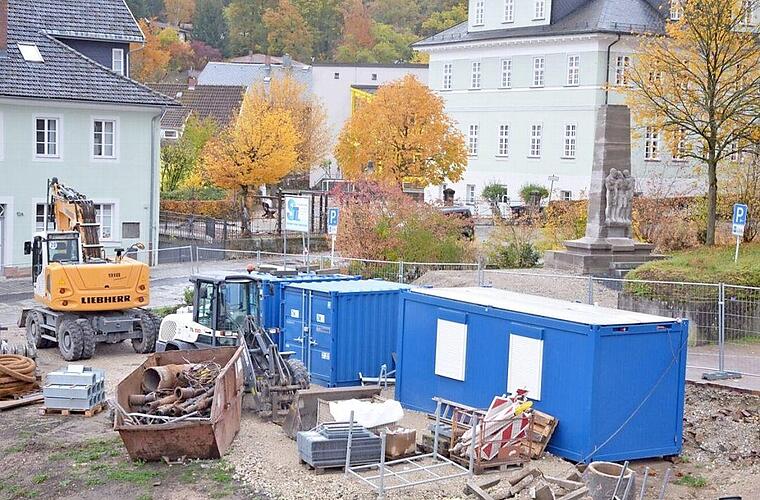 Zum anderen steht der laufende Umbau des Marktplatzes dem entgegen. Das Mahnmal "ums nackte Leben" wurde zwar näher zur Stadtkirche Sankt Georg hin versetzt, doch auch dort hat der Baustellenbetrieb das Umfeld belagert.
