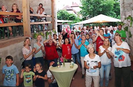 Das Problem ist bei vielen Sangesfreudigen jedoch immer der Text. Abhilfe brachte ein Beamer, der die entsprechenden Zeilen auf eine Großleinwand hinter der Bühne in der Scheune projizierte. "Da ist der Text dabei, da bin ich einfach textsicher", schwärmte eine singbegeisterte Besucherin.
