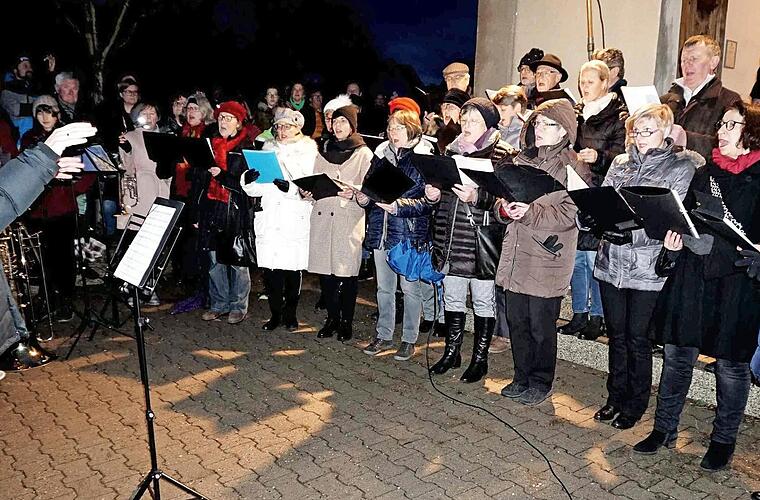 Zwischen den vier Lesungen sang der Chor "In dunkler Nacht ein heller Klang", "Freu dich Welt" und "O heilige Nacht" sowie "Ding dong merrily on high". Die besinnliche und stimmungsvolle kleine Feier endete mit einem gemeinsamen Gebet für die Verstorbenen und am Ende, bevor Ursula Welker die Besucher mit einem "Frohe Weihnachten" verabschiedete, wurden noch gemeinsam die beiden klassischen Lieder "O du fröhliche" und "Stille Nacht" angestimmt.