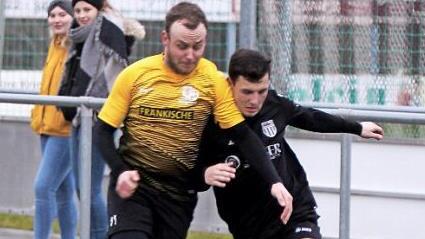 Die Nachwuchsfußballer der U19 des FC Sand haben die Herrenmannschaft des TV Königsberg in einem Testspiel bezwungen. Die Partie endete 4:3 für die FC-Junioren. Die Sander Tore besorgten Nico Bräuter (10.), Tim Heurung (31.), Luca Zeiß (50.) und André Lörzer (rechts im Bild). Für den TV Königsberg trafen Jan-Michael Janus (40.) und Florian Kupfer (82., 90.). Foto: Günther Geiling