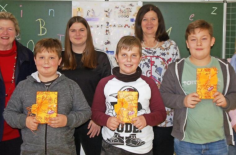 Da strahlten die drei Sieger, als sie ihre Preise überreicht bekamen. Beim Vorlesewettbewerb der sechsten Klassen der Freiherr-von-Lutz-Mittelschule wurde in einem sechsköpfigen hochklassigen Leserfeld Sandro Beck Schulsieger und fährt nun zum Kreisentscheid nach Bad Kissingen.