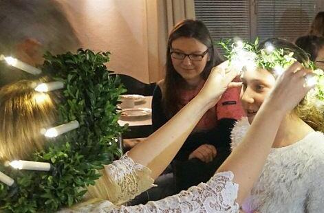 Das Andenken an die Heilige Luzia, das vor allem in Skandinavien groß gefeiert wird, wurde nun auch in Marktschorgast hochgehalten. Die große Luzia (Eva Kefes) beschenkte die kleinen Volkstänzer und Tänzerinnen und setzte ihnen ein beleuchtetes Kränzchen auf, das Licht in die Dunkelheit brachte. Darauf waren die kleinen "Luzias" stolz.