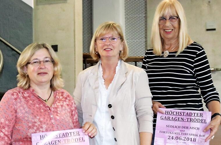 Bestens vorbereitet auf den Höchstadter Garagen-trödel fühlen sich Jeanette Exner, Anita Kopp und Konni Lühring von der Untergruppe "Trödel" des Arbeitskreises Kultur (Akku).