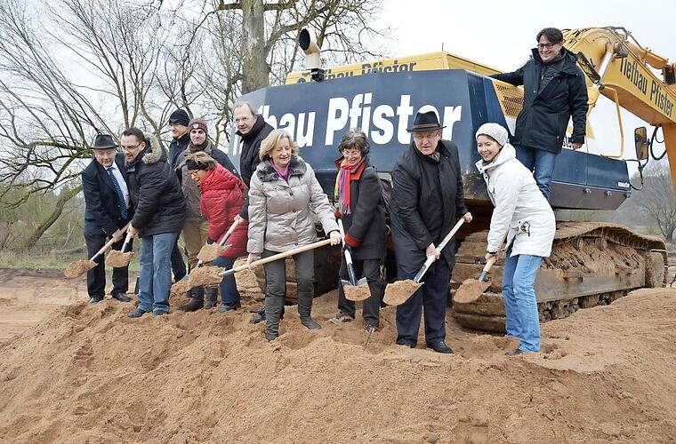 Nach Abstimmungen mit dem Landratsamt und dem Wasserwirtschaftsamt Kronach entschied sich der Hirschaider Marktgemeinderat Ende 2013 für eine Planungsvariante, bei der als Ausgleich ein sogenannter "Vorlandabtrag" stattfinden sollte. Jetzt fand der offizielle Spatenstich dafür statt.