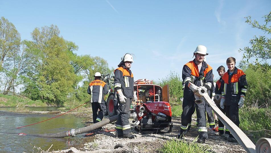 Die Übungen innerhalb der Alarmierungseinheit hatten zu Jahresbeginn kurzzeitig für Aufregung bei den beteiligten Feuerwehren gesorgt, weil der Ebensfelder Bürgermeister, Bernhard Storath (CSU), und Kreisbrandmeister Christian Schilder bei der Hauptversammlung der Oberbrunner Feuerwehr ihren Unmut über den vermeintlich fehlenden Willen zur Gemeinsamkeit kundgetan hatten. Von mangelnder Bereitschaft konnte aber während und nach der Übung am Main dann nicht die Rede sein. Martin Schmidt, stellvertretender Kommandant in Oberbrunn, war am Ende jedenfalls sichtlich zufrieden: "Der Einsatz lief harmonisch ab, wir haben uns von Anfang an gegenseitig geholfen." Der Mann, der die erste gemeinsame Übung auf den Weg gebracht hat, ist der Döringstadter Kommandant Heinrich Zellmann. Der hatte mit dem angenommen Brand auf dem landwirtschaftlichen Anwesen "ein Szenario, wie es wirklich mal passieren könnte" organisiert. Aufgabe der drei Feuerwehren war es - "ohne Zeitdruck, nicht auf Leistung", wie Zellmann zu Beginn betonte -, eine Wasserversorgung vom Main herauf bis an die Straße von Döringstadt nach Wiesen aufzubauen. Wichtig war es dem Leiter der aktiven Wehr in Döringstadt, dass die rund 30 Einsatzkräfte in gemischten Teams ans Werk gingen: "Da lernt man sich besser kennen. So soll es ja auch sein." Schließlich habe jede Tragkraftspritze ihre Eigenheiten. Da sei es gut, wenn man im Ernstfall wisse, wie die Technik die Nachbarn funktioniere.