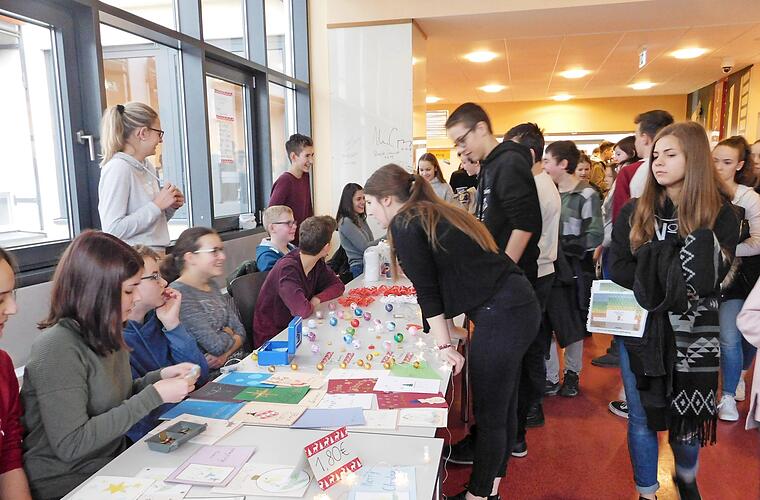 "Eigentlich hatte unsere Idee, einen Verkauf für wohltätige Zwecke zu veranstalten, erst einmal fast gar nichts mit Weihnachten zu tun. Auf diese Idee kamen wir nämlich in der Spanischstunde, als wir einen Text über Jugendliche, die sich sozial engagierten, lasen", so eine Schülerin der Klasse 9a des Jack-Steinberger-Gymnasiums in Bad Kissingen zu ihrer vorweihnachtlichen Bastelaktion, die nicht zuletzt auch unter dem Motto des diesjährigen Schulwettbewerbs "Gemeinschaft" stand.