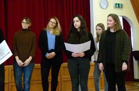 Marion Krüger-Hundrup Die jungen Damen in der Alten Aula der Maria-Ward-Schulen gehören allesamt zur "SMV": zur Schülermitverantwortung. Emma Bußmann (14), Lena Finzel (14), Francesca Heilmann (16), M...