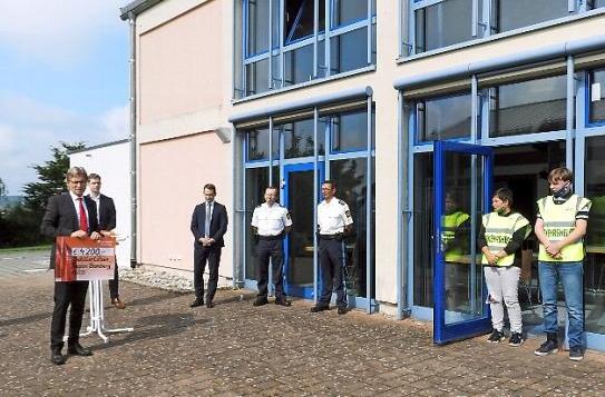 Mathias Polz von der Stiftung der Sparkasse Bamberg überreichte anschließend einen symbolischen Scheck, der - so die stellvertretende Schulleiterin Annette Löhlein - für Anschaffungen in die Ausrüstung der Schülerlotsen, aber auch für Ausflüge oder ein Eisessen zwischendurch verwendet werden soll.