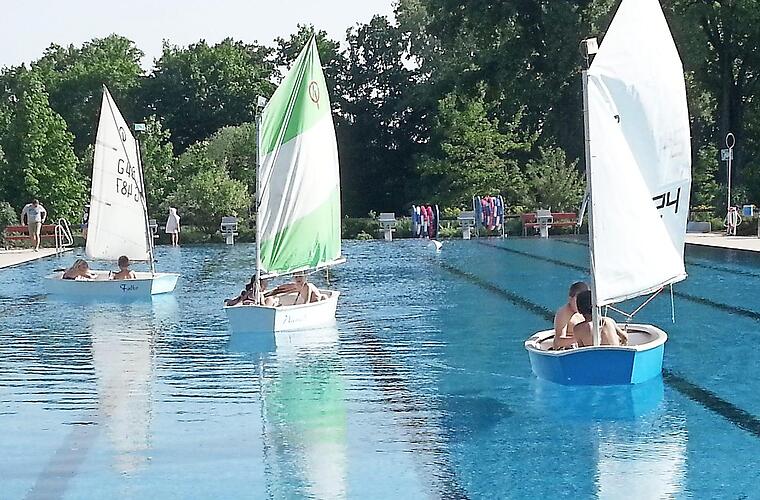 Wie geht das? Da gibt es einerseits eine pfiffige Crew junger Männer, die Jugendabteilung der Marinekameradschaft Forchheim unter der Leitung von Peter Schulte, die ihre Begeisterung für das Wasser und den Seesport auch einmal mit anderen jungen Leuten erleben wollten. Dann gibt es die aufgeschlossene Leitung des Königsbades, Peter Lutz, die es ermöglichte, diese trendige Idee umzusetzen.