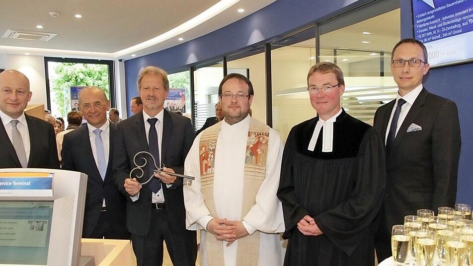 Eggolsheim — Die umgebaute Volksbank-Filiale in Eggolsheim wurde am Wochenende mit einem Familienfest feierlich eingeweiht. Pfarrer Daniel Schuster und Pfarrer Ulrich Bahr spendeten den neuen Räumlichkeiten den kirchlichen Segen.