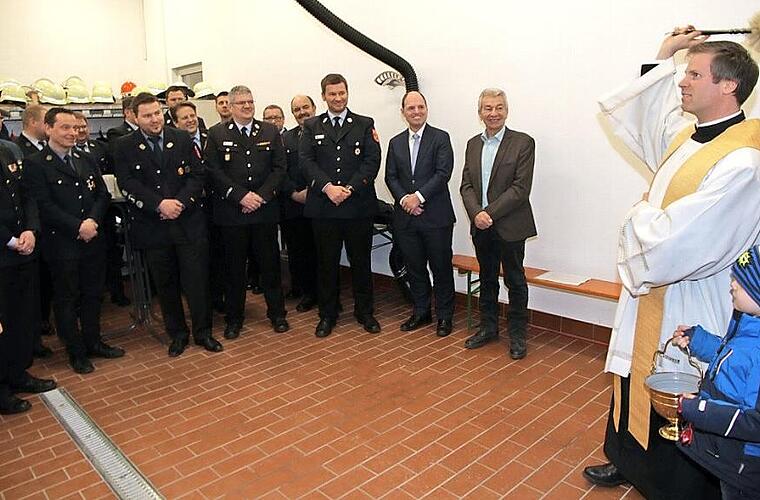 Pfarrer Matthias Steffel weihte den Neubau im Rahmen einer Feierstunde im Gerätehaus mitWorten des Evangelisten Markus ein. Dritter Bürgermeister Reinhold Kotzer sprach allen Beteiligten Dank und Anerkennung im Namen der Gemeinde Hallerndorf aus.