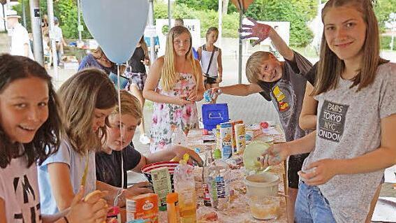 Körpereinsatz forderte die Herstellung von Knetseife für die Schüler. Der Aufwand hatte sich aber gelohnt, denn die Seife wurde zu einem der vielen Verkaufs...