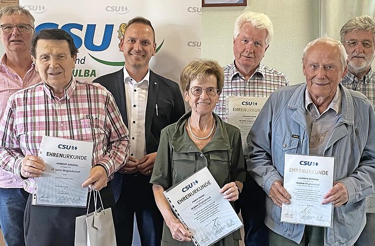 Der Vorsitzende freute sich über die Treue von langjährigen Mitgliedern und dankte allen Geehrten mit einer Urkunde, Ehrennadel und einem Geschenk. Geehrt wurden Maria Spitzenberg für 55 Jahre sowie Hermann Seifried und Bernhard Keller für 50 Jahre. Seit 45 Jahren sind Johannes Schmück, Herbert Schiessel und Ellen Halbig bei der CSU. Für 40 Jahre wurden Maria Neder und Richard Bahn geehrt. Andreas Täuber ist seit 30 Jahren dabei. In seinem Grußwort lobte der Vorsitzende der Seniorenunion, Manfred Manger, die Zusammenarbeit der beiden Vereine und erläuterte die Ziele sowie die sehr gute Entwicklung der Seniorenunion. red