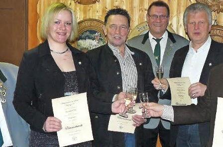 Mit einem dreifach "Schützen Heil!" und einem Gläschen Sekt ließen die versammelten Schießsportfreunde die vier Ausgezeichneten hochleben.